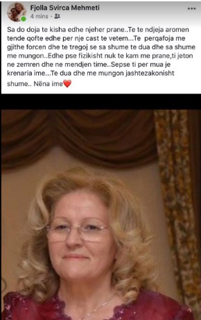 Sot, ajo ka publikuar një imazh të nënës së saj, teksa ka thurur fjalë që ta këputin shpirtin.