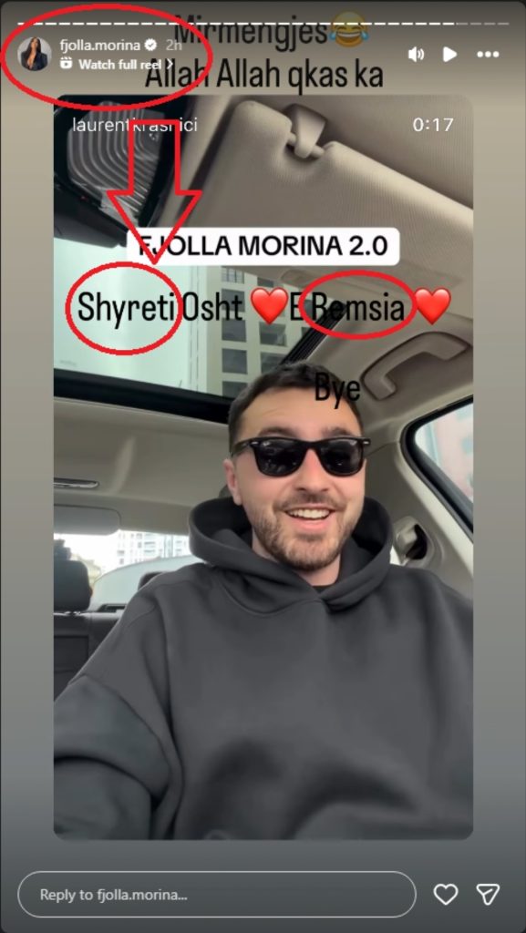 Të njëjtën video Fjolla e ripostoi, duke shkruar: “Shyreti osht zemer e Remsia zemer, tung”.