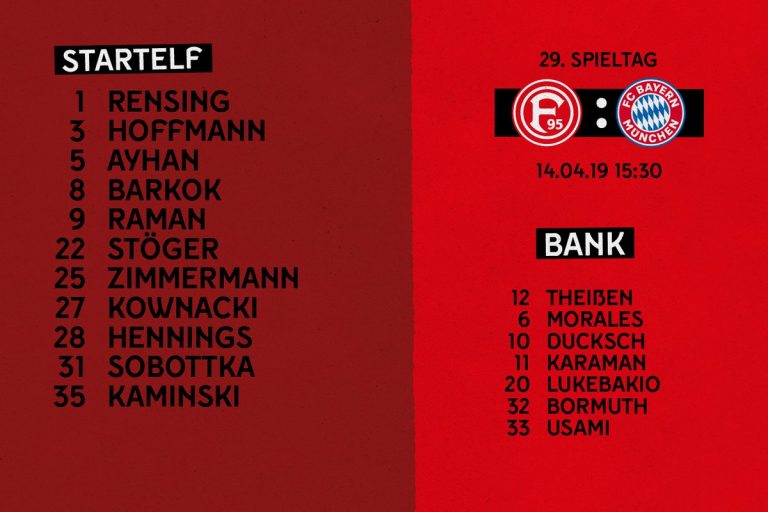 Fortuna Dusseldorf – Bayern Munich, publikohen formacionet zyrtare