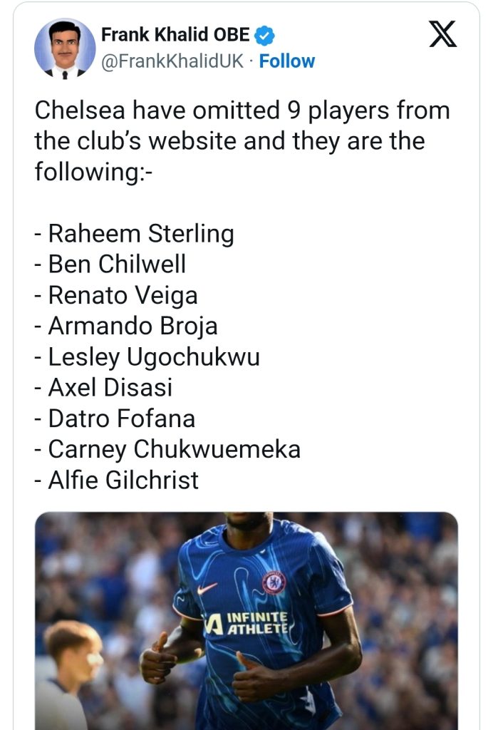 Përveç Brojës, nga Chelsea do të largohen lojtarët si: Raheem Sterling, Ben Chilwell, Renato Veiga, Lesley Ugochukwu, Axel Disasi, Datro Fofana, Carney Chukwuemeka dhe Alfie Gilchrist.