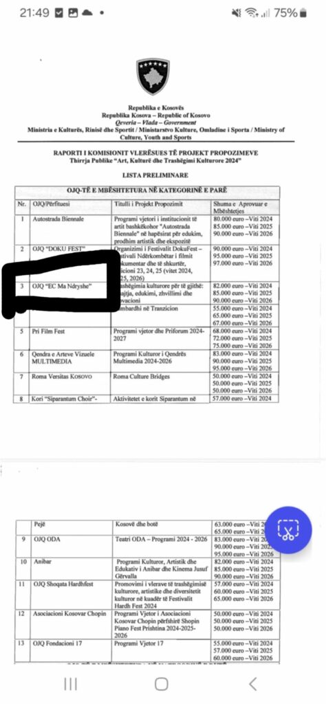Ministria e Kulturës, Rinisë dhe Sportit e udhëhequr nga Hajrulla Çeku, fundin e mandatit të saj po e ‘shfrytëzon për të shpërndarë para edhe nëpër OJQ të ndryshme’. Për këtë, ai është përkujdesur që organizatës “EC MA NDRYSHE”, që vet është themelues i saj, t’ia ndaj 257 mijë euro.