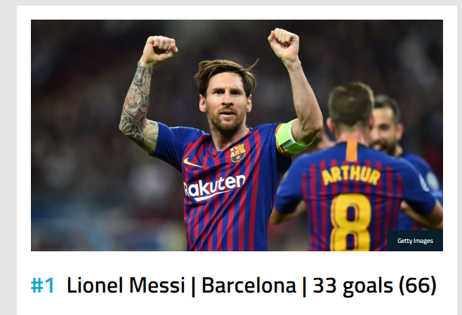 Kur kanë mbetur edhe pak javë deri në përfundim të këtij sezoni, ylli i Barcelonës Messi prin me 33 gola, apo 66 pikë, duke e lënë prapa francezin e PSG-së, Mbappen me 27 gola apo 54 pikë.