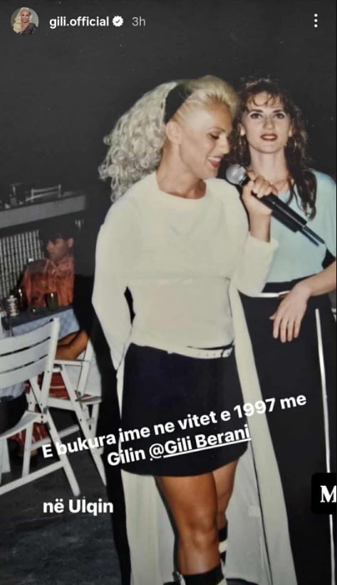 Së fundmi, këngëtarja ka ndarë me ndjekësit e saj një kujtim të veçantë nga arkiva personale. Bëhet fjalë për një fotografi të realizuar në vitin 1997, gjatë një mbrëmjeje muzikore të mbajtur në Ulqin. Në këtë imazh, Gili shfaqet me një pamje shumë të freskët dhe rinore, e veshur me një fustan të shkurtër që i theksonte linjat trupore dhe elegancën natyrale.