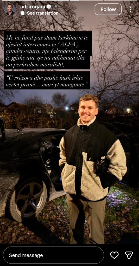 Por mesa duket, këto 24 orë të vështira i kanë shërbyer Adrit për të kuptuar më shumë rreth rrethit të tij shoqëror. Përtej gëzimit për gjetjen e mjetit, ai ka lëshuar një “shigjetë” të fortë publike për ata që e braktisën në momentin e vështirë.