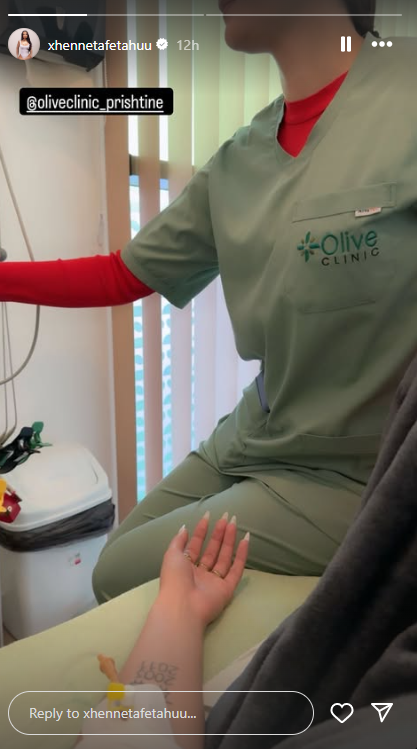 Në një video të shpërndarë në “Instagram Story”, Xheneta shihet duke marrë shërbim në Olive Clinic në Prishtinë, një nga klinikat estetike më të njohura në vend.