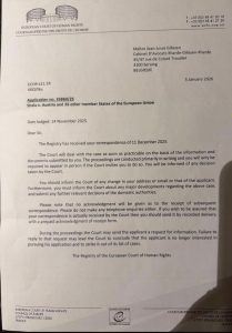 Gjykata Evropiane për të Drejtat e Njeriut ka konfirmuar pranimin e padisë me numër 35860/25, të iniciuar nga Shala kundër Austrisë dhe 26 shteteve të tjera anëtare të Bashkimit Evropian.