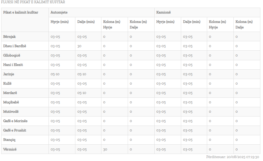 Sipas të dhënave të publikuara në faqen zyrtare, aktualisht pritjet për të hyrë në Kosovë janë të shkurtra