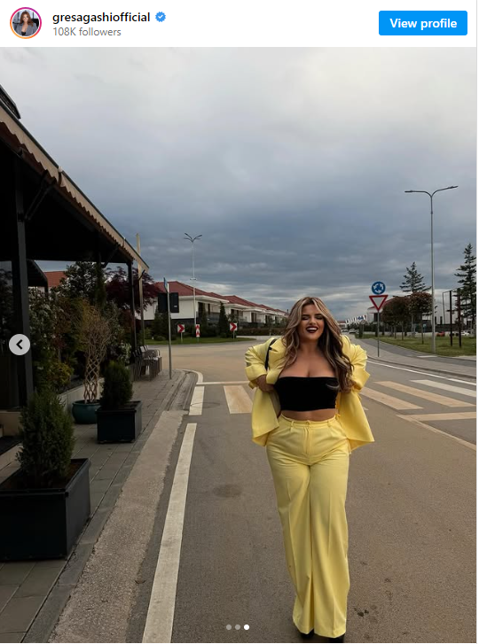 Së fundmi, Gresa ka shpërndarë disa fotografi në profilin e saj zyrtar në Instagram që kanë tërhequr vëmendjen e mijëra ndjekësve. Fotot janë realizuar në një ambient urban – në rrugë, me një sfond minimalist që i jep vëmendje të plotë protagonistes.