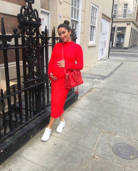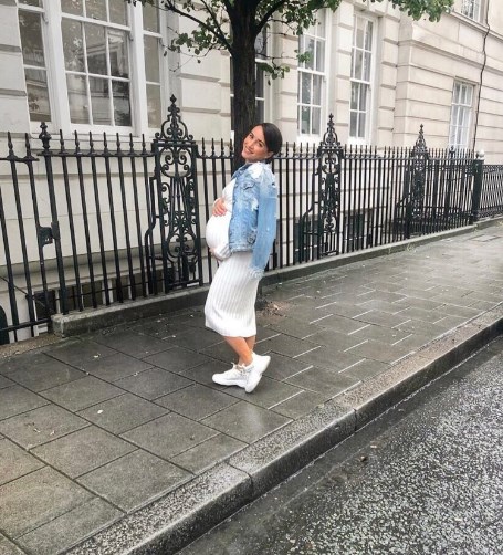 Në çdo imazh që poston ajo fokuson barkun e saj të fryrë, në tesha tejet të ngushta.