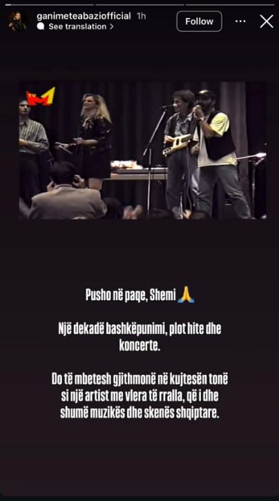 “Pusho në paqe, Shemi. Një dekadë bashkëpunimi, plot hite dhe koncerte. Do të mbetesh gjithmonë në kujtesën tonë”, shkroi Ganja, duke shprehur mirënjohjen dhe respektin për kontributin e tij artistik.