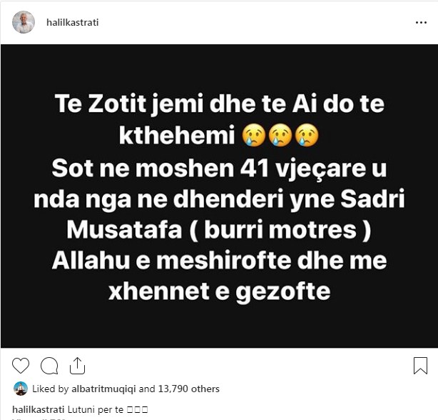 Përmes tij ai ka njoftuar se ka ka ndërruar jetë burri i motrës së tij.