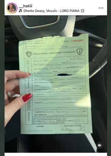 Ky rast vjen pas një historie të mëparshme ku influencerja është ndëshkuar më herët nga autoritetet, dhe në atë rast përveç gjobës i ishte marrë edhe patenta e shoferit.