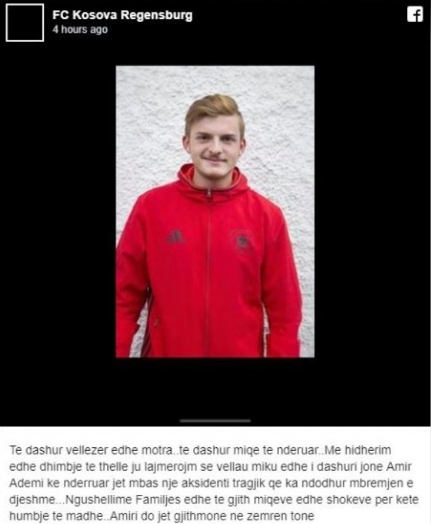 Njoftimin e ka dhënë klubi shqiptar, FC Kosova Regensburg në Facebook, shkruan albinfo ch.
