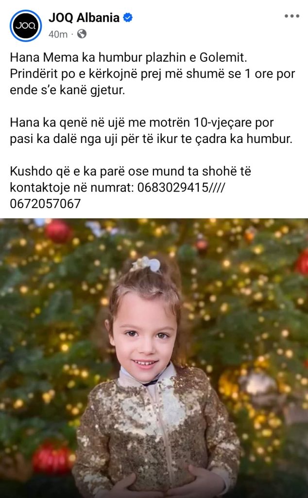 JOQ Albania njofton se prindërit po e kërkojnë prej më shumë se një ore por ende s’e kanë gjetur