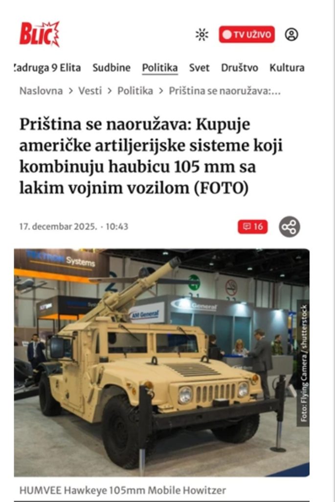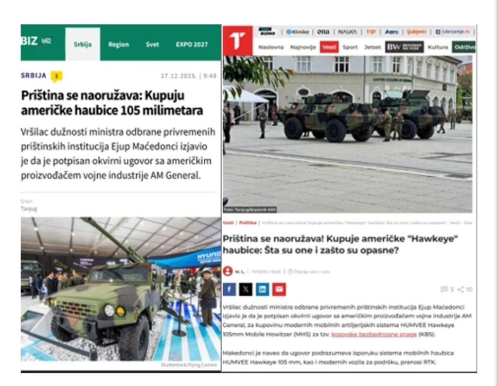 Portali BLIC shkroi se “Prishtina po armatoset: blen sisteme amerikane të artilerisë që kombinojnë obuzin 105 mm me një automjet të lehtë ushtarak”, duke e paraqitur marrëveshjen si zhvillim kërcënues për sigurinë rajonale.