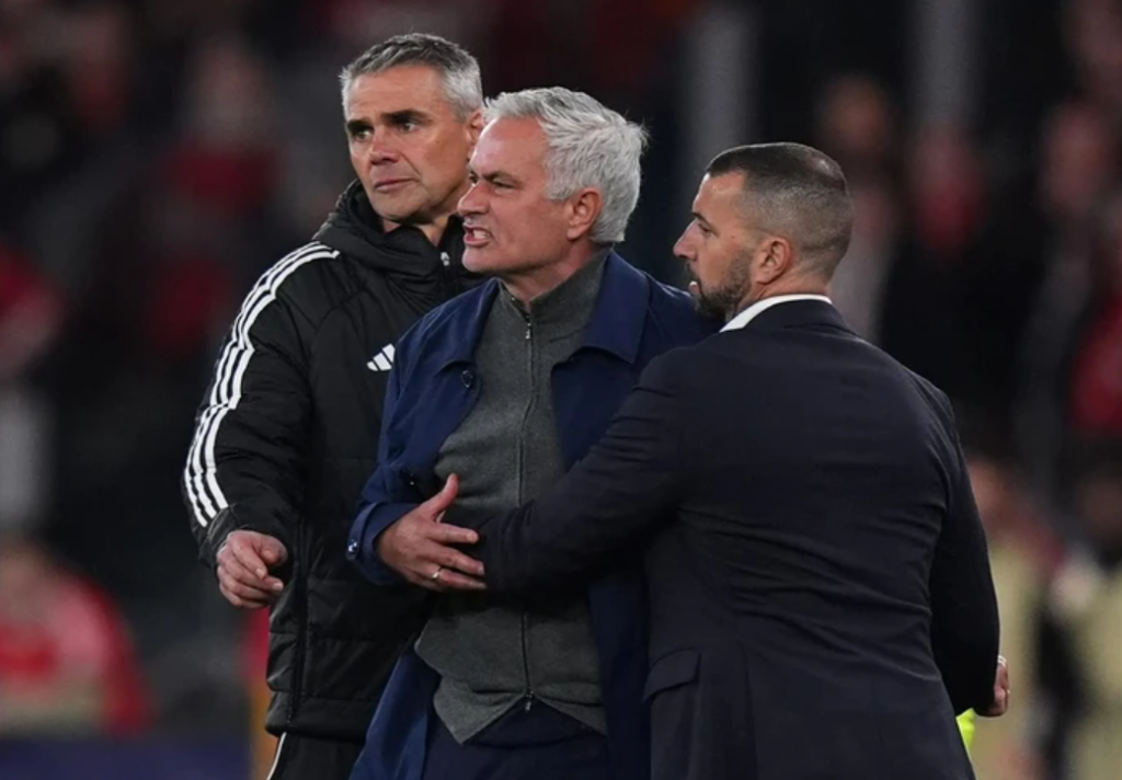 Trajneri i Benficës u ndëshkua me dy kartonë të verdhë brenda pak çastesh, i pari për protesta pas një faulli të Vinicius që nuk solli karton të dytë për brazilianin.