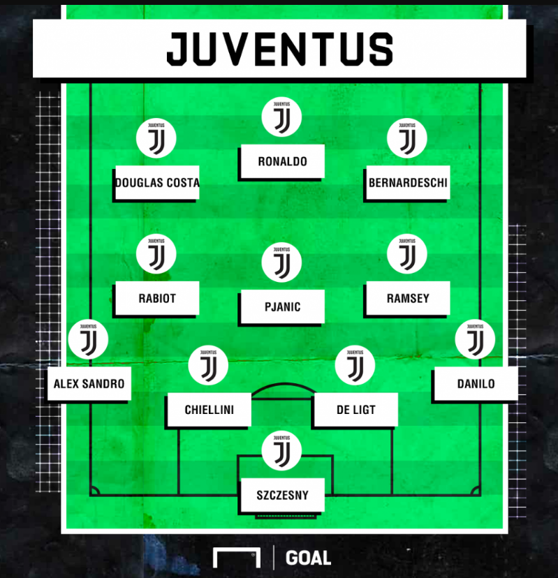 Në formacion paraqiten edhe dy blerjet e reja në mbrojtje, Matthijs De Ligt dhe Danilo si dhe dy përforcimet e reja të mesfushës, Adrien Rabiot dhe Aaron Ramsey.