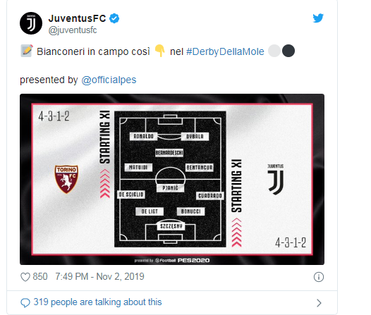 Juventus luan si mysafire e Torino, në derbin lokal, në kuadër të xhiros së 11-të në Serie A, shkruan lajmi.