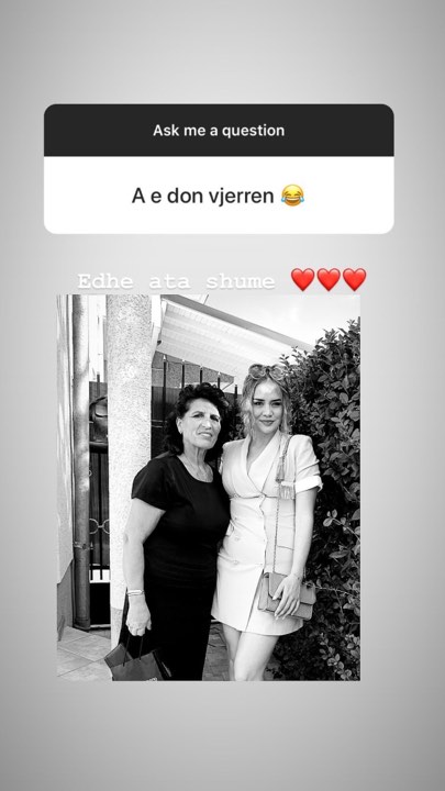 Sot ajo është pyetur nëse e do vjehrrën, e në këtë pyetje ajo është përgjigjur: “Edhe ata shumë”.