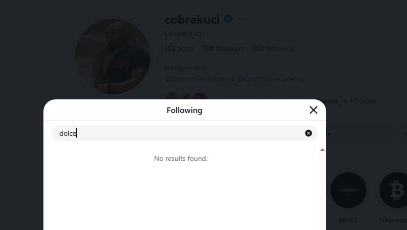 Gjatë ditës së djeshme u publikua një informacion në mediat sociale ku shfaqej profili i Edit, duke treguar se ai vazhdonte ta ndiqte Dolcen, gjë që ngjalli spekulime dhe komentime të shumta nga ndjekësit.