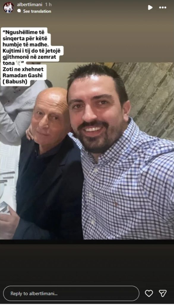 “Ngushëllime të sinqerta për këtë humbje të madhe. Kujtimi i tij do të jetojë gjithmonë në zemrat tona. Zoti në xhehnet, Ramadan Gashi (babush)”, ka shkruar ai.