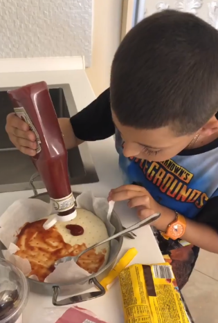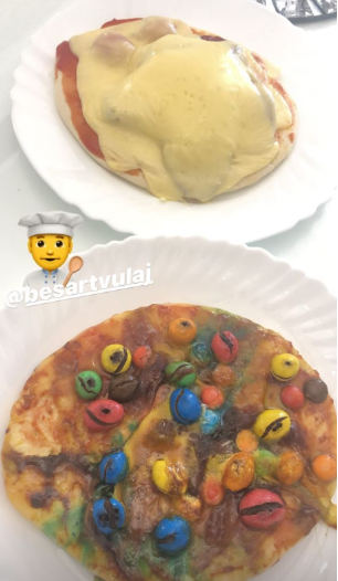 Ai ka gatuar dy pica, një të ëmbël për vete dhe një të njelmët për nënën. Në videot që ka publikuar këngëtarja nga Mali i Zi, dëgjohet Besarti teksa frikësohet ta vendosë tepsinë në furrë, se mos digjet, por nëna ia largon atë frikë.