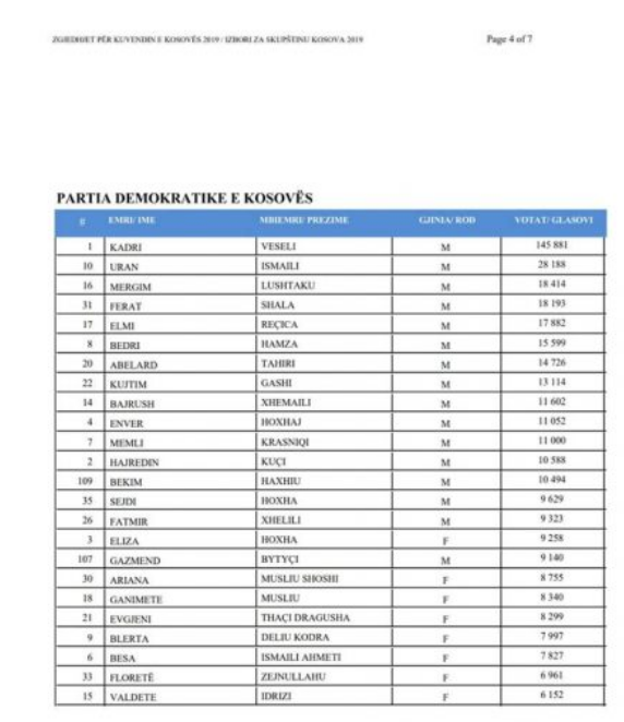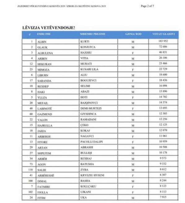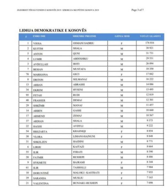 Ndërkaq, këto janë listat e plota të partive dhe kandidatëve të cilët do të jenë pjesë e Kuvendit të Kosovës: