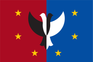 Një flamur që ishte sinonim i flamurit kombëtar të Shqipërisë me gjashtë yje të shoqëruar me sfond gjysmë të kuqe dhe gjysma tjetër e kaltër.
