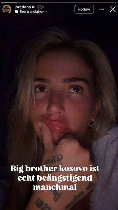 Përmes një postimi të publikuar në InstaStory, Loredana ndau një mendim të drejtpërdrejtë dhe mjaft domethënës, duke shkruar se Big Brother Kosova është vërtetë frikësues ndonjëherë.