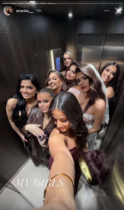 Në njërën nga fotografitë e publikuara, Eronita shfaqet me shoqet gjatë festës së beqarisë. Fotoja është realizuar në ashensor, ku ato duken të buzëqeshura dhe të relaksuara, shkruan “Kosovarja”.