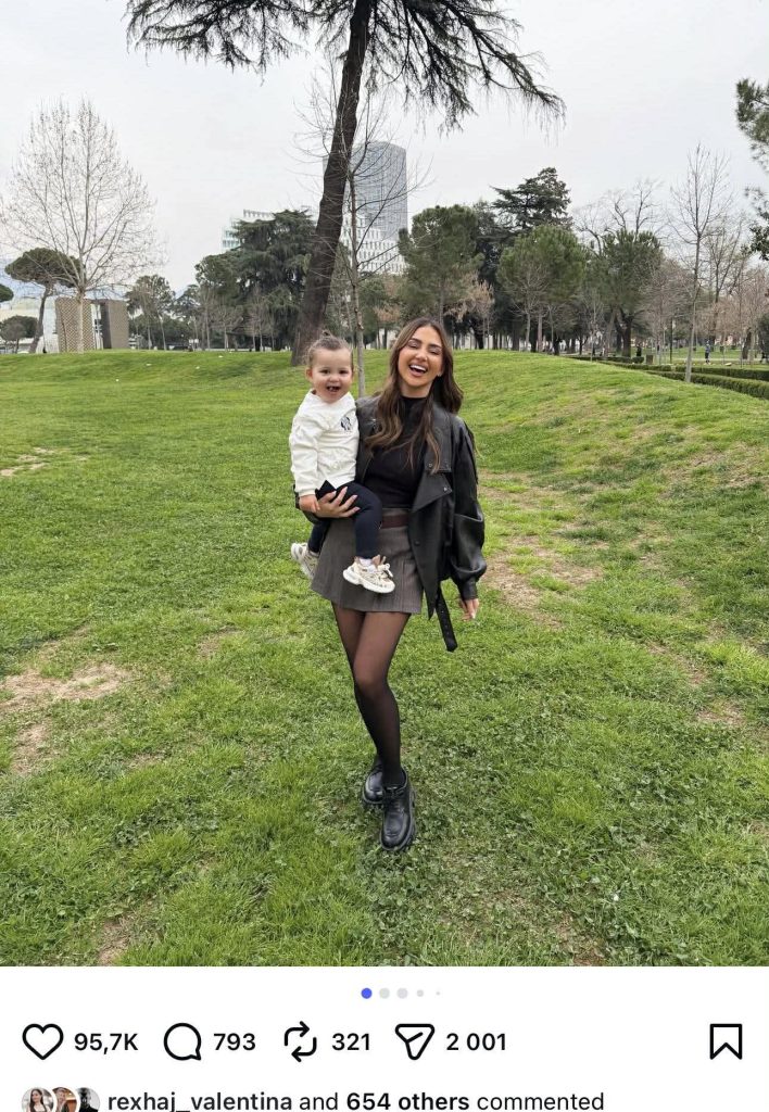 Në fotografitë dhe videot që publikon në Instagram, ajo shfaqet e buzëqeshur dhe e relaksuar.