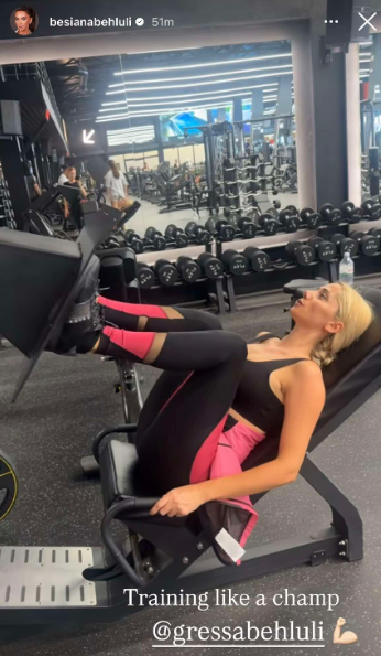 E veshur me tuta sportive dhe me flokët e kapura, Gresa shfaqet e fokusuar dhe plot energji, duke dëshmuar se pas asaj pamjeje të shkëlqyer që e karakterizon, fshihet shumë punë dhe përkushtim.
