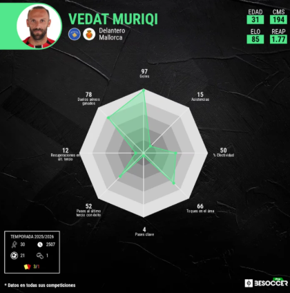 Muriqi ka realizuar edhe në dy ndeshjet e fundit, duke e rritur edhe më shumë presionin te Valencia, e cila do të kërkojë zgjidhje jo vetëm me emra në mbrojtje, por edhe me qasje taktike për ta neutralizuar.