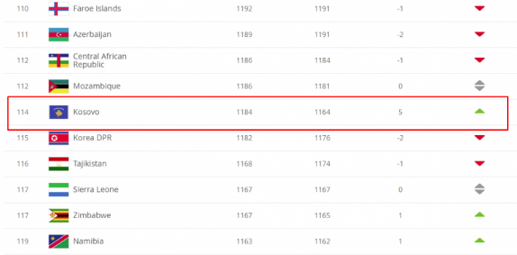 Kosova nga pozita e 119 sa ishte herën e kaluar, tashmë është ngritur në pozitën e 114 – që është pozita më e lartë që nga pranimi në UEFA e FIFA në vitin 2016.
