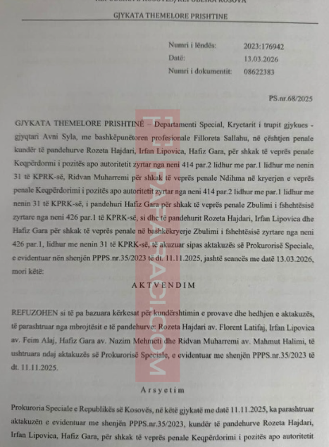 Paparaci e ka siguruar ekskluzivisht vendimin që lë në fuqi aktakuzën për korrupsion dhe zbulim të fshehtësisë zyrtare ndaj ish-ministres së Tregtisë në Qeverinë Kurti II.