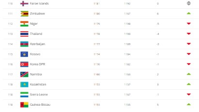 Deri në muajin tetor, Kosova gjendej në vendin e 114-të, ndërsa këtë muaj ka pësuar rënie pas humbjeve nga Çekia dhe Anglia.