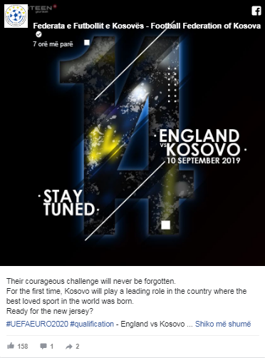 “Sfida e tyre e guximshme nuk do të harrohet kurrë. Pë herë të parë Kosova do të luajë rol udhëheqës në vendin ku lindi sporti më i dashur në botë. A jeni gati për fanellën e re”, ka shkruar FFK-ja në Facebook.
