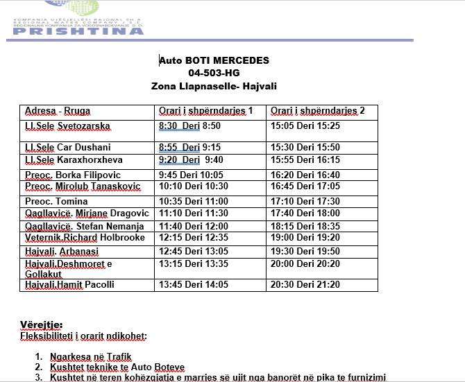 Kompania Rajonale e Ujësjellësit “Prishtina” ka publikuar orarin e autobotëve për furnizim me ujë për pije pasi në liqenin e Badocit janë rritur sërish vlerat e manganit.