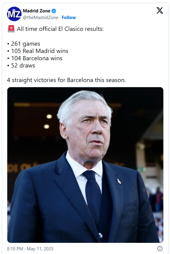 Kjo e dëshmon edhe një herë se rivaliteti ndërmjet Barcelonës dhe Real Madridit mbetet një ndër më të ashpërit dhe më të ngushtit në historinë e futbollit botëror.