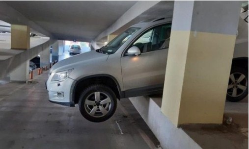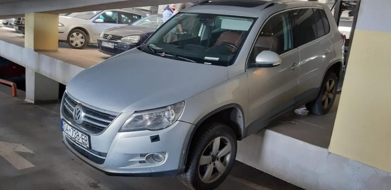 Vetura e tipit ‘Volkswagen Touran’ ka pësuar një vetaksident derisa ka rënë nga një pjesë që e lidh parkingun dhe rrugën për dalje të parkingut.