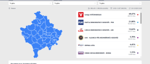 Pasi janë numëruar 92,65% e votave, Lëvizja Vetëvendosje po prin me 49,47% ose 429,572 vota gjithsej.