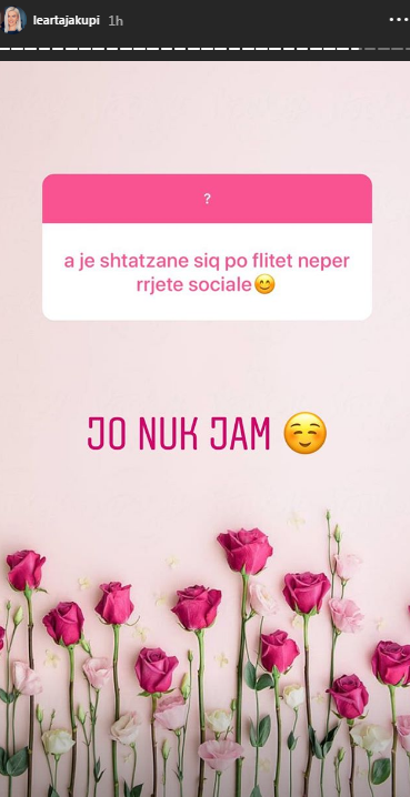 Sot, ajo ka hapur një pyetësor në Instagram dhe në pyetjen se a është shtatzënë për të cilën është diskutuar shumë së fundi në medie, Learta tregon se nuk është në pritje të fëmijës së dytë./ORAinfo/