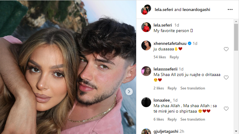 Në disa fotografi të publikuara në Instagram, Lela dhe Leo shihen të përqafuar dhe të buzëqeshur, duke reflektuar një lidhje të ngrohtë, të sinqertë dhe të konsoliduar me kalimin e kohës.