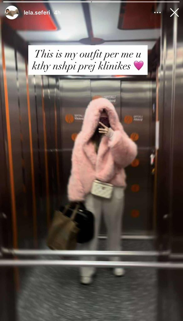 Ajo ka ndarë një tjetër foto, këtë herë të shkrepur në ashensor, moment që simbolizonte daljen e saj nga spitali dhe kthimin drejt normalitetit. Në atë imazh ajo shfaqej e veshur thjeshtë, e qetë dhe me një pamje që dukej se mbante një përzierje lodhjeje dhe lehtësimi, ndërsa përgatitej të kthehej në shtëpi.