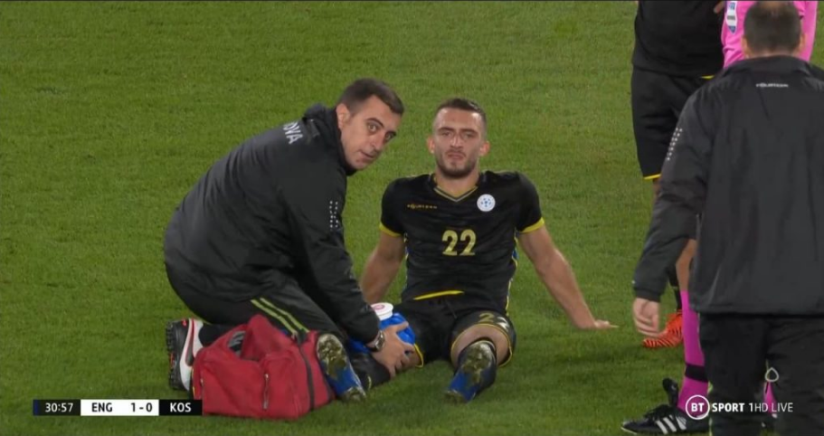 Anglia për momentin është duke avancuar me golin e Phil Foden ndërsa pak çaste më parë u lëndua Lirim Mema dhe u detyrua të largohej nga fusha me barelë.