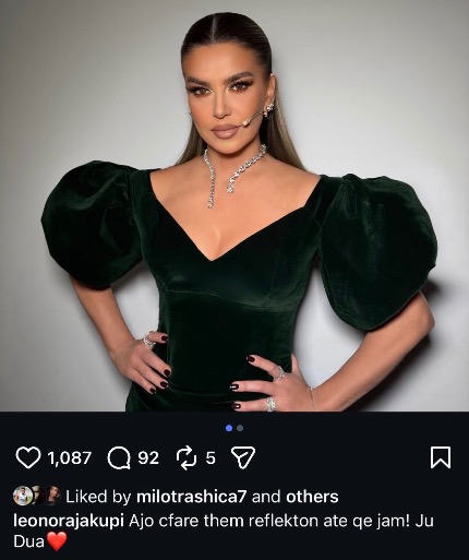 Përmes një postimi në llogarinë e saj zyrtare, ku shfaqet mjaft elegante, Leonora ka lëshuar një deklaratë që duket si një mbrojtje e drejtpërdrejtë e qëndrimeve të saj, shkruan IndeksOnline.