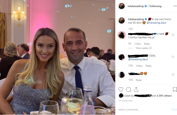 Madje përkrahje ajo i jep edhe në dasmë që ata ishin mbrëmë. Lola ka publikuar një fotografi me Dautin ku shkruan: “% me ma t’mirin me 50-shin