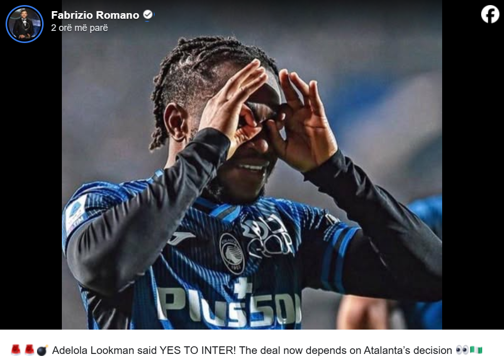 “Ademola Lookman i tha PO INTERIT! Marrëveshja tani varet nga vendimi i Atalantës”, thuhet në postimin e ekspertit të transferimeve, Fabrizio Romano.