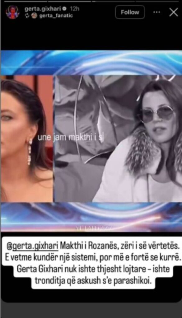 Gerta ka publikuar një instastory që kishin për ndjekësit e saj me këtë shkrim dedikuar Rozanës: