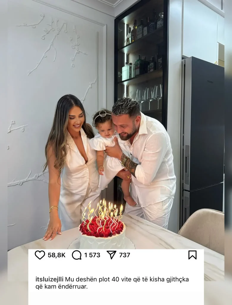 Në këtë ditë të veçantë, këngëtari e ka festuar ditëlindjen e tij të 40-të bashkë me partneren e tij Kiara Tito dhe vajzën e tyre. Në një foto prekëse ku i tre anëtarët e familjes ishin të veshur në të bardha, ai ka shprehur mirënjohjen për dashurinë dhe mbështetje që ka marrë gjatë këtyre viteve. “Mu deshën plot 40 vite që të kisha gjithçka që kam ëndërruar”, shkruan Luizi krahas imazhit plot ngrohtësi.